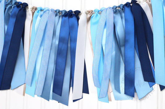 6-8 ft Light Blue, Slate Blue, Cobalt and Navy Ribbon Garland | Baby Boy Shower | Birthday Decor