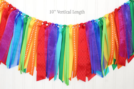 6-8 ft Rainbow Ribbon Garland | Art Party Decoration