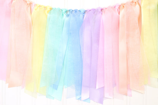 6-8 ft Pastel Rainbow Ribbon Garland | Unicorn First Birthday Fringe | Rainbow Baby Shower