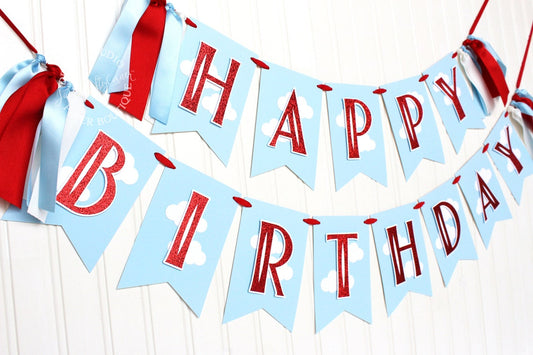 Airplane Inspired First Birthday Ribbon Highchair Banner