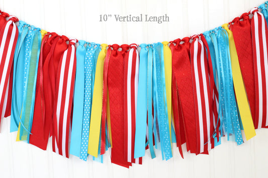 6-8 ft Bright Carnival Circus Ribbon Garland | Birthday Baby Bridal Shower Decor | Come One Come All